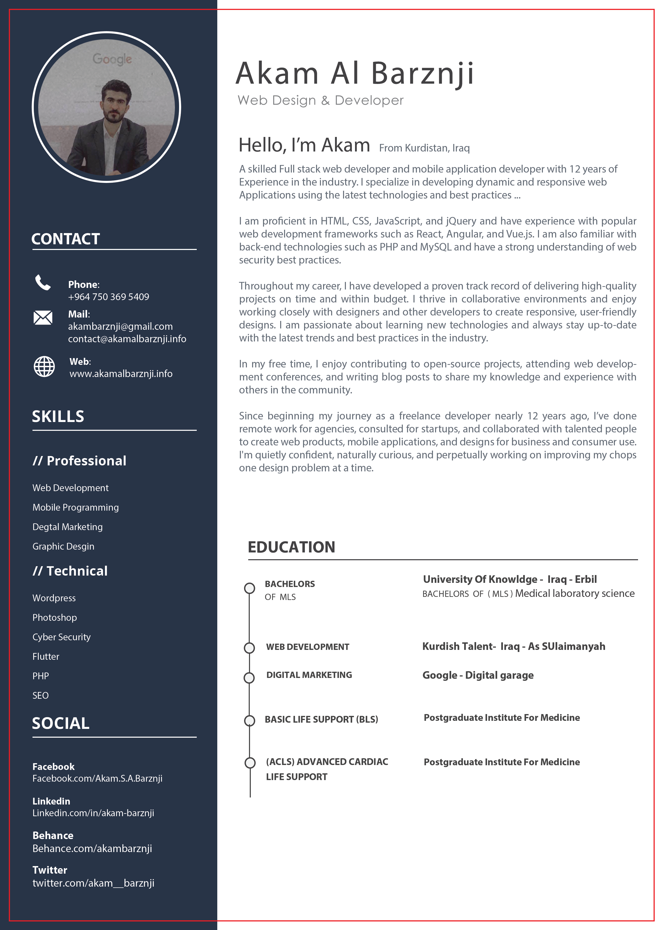 Throughout my career, I have developed a proven track record of delivering high-quality projects on time and within budget. I thrive in collaborative environments and enjoy working closely with designers and other developers to create responsive, user-friendly designs. I am passionate about learning new technologies and always stay up-to-date with the latest trends and best practices in the industry.